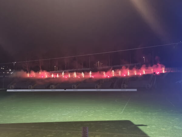 Anschließend zog die Gruppe durch den kleinen Weihnachtsmarkt und nahm die reservierten Plätze im Stadion ein – mit hervorragender Sicht auf Bühne und Leinwand.