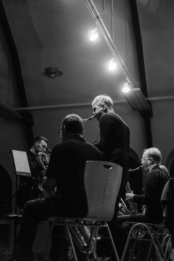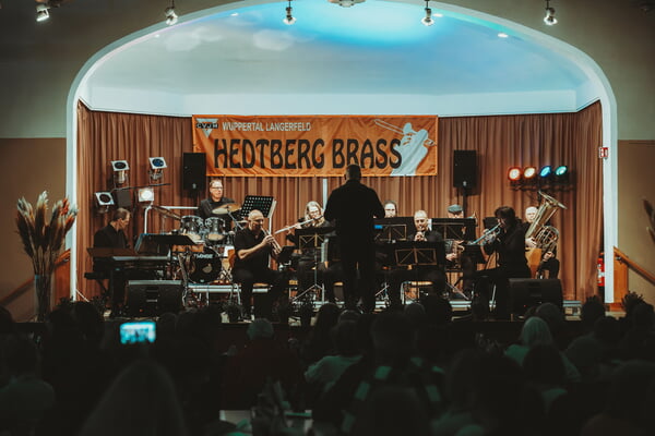 Danach zogen sich der Posaunenchor und sein Dirigent, Willi Klein, zurück und überließen nach einer kurzen Umbaupause der Big Band Hedtberg Brass und ihrem Bandleader Manuel Galemann die Bühne.
